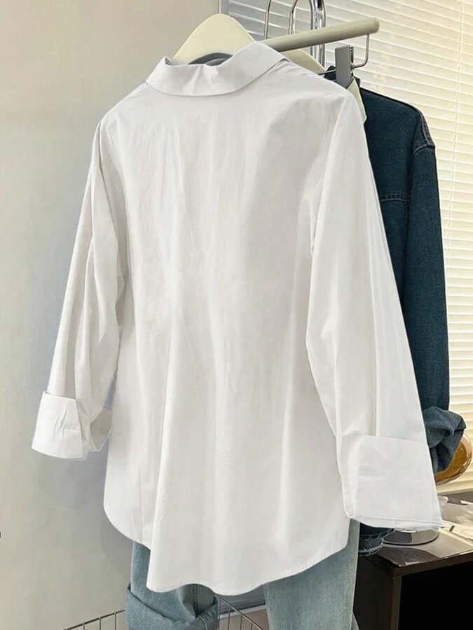 / Camisa casual manga larga con botones y bolsillo frontal. Blanca. (L)