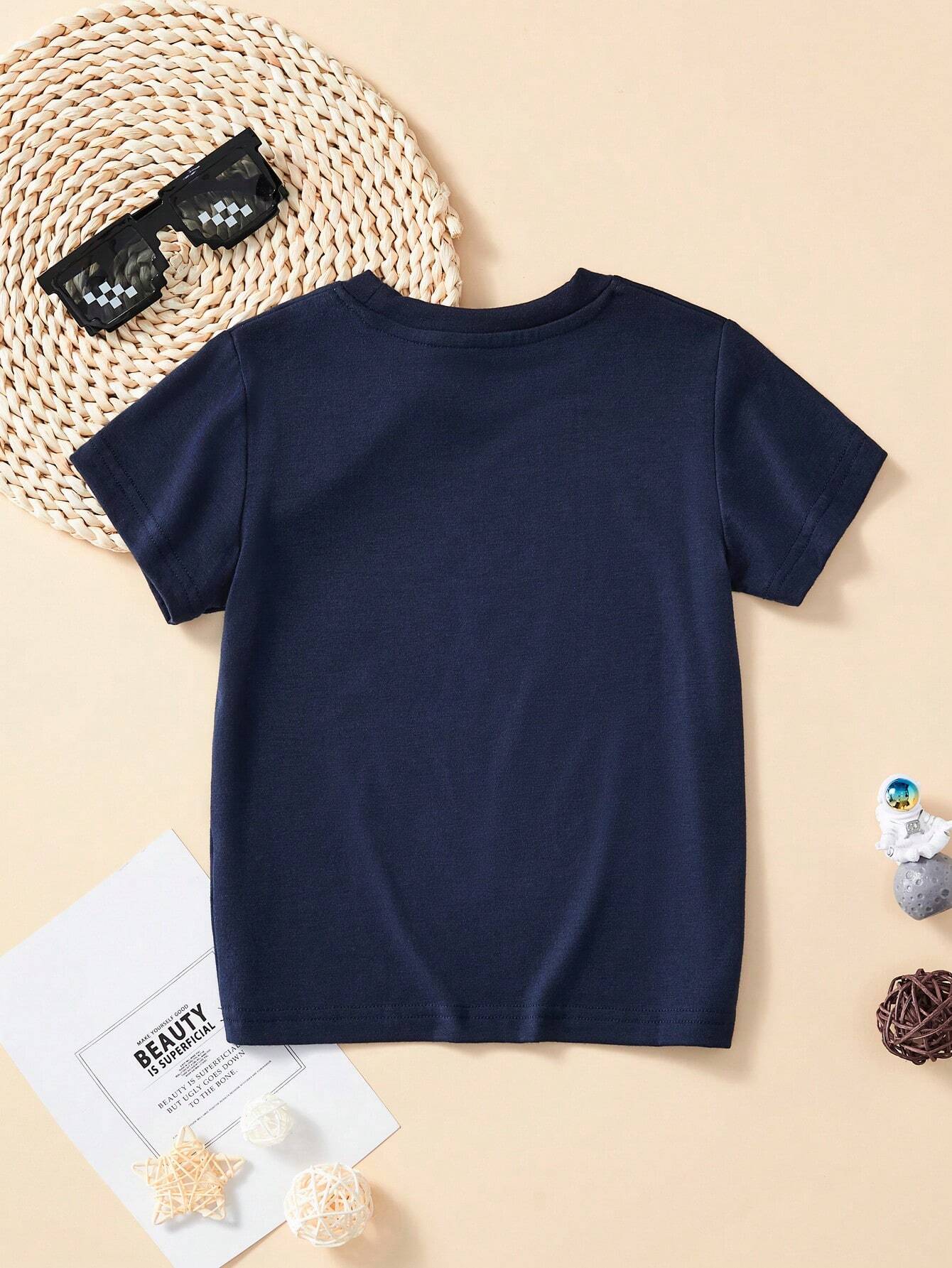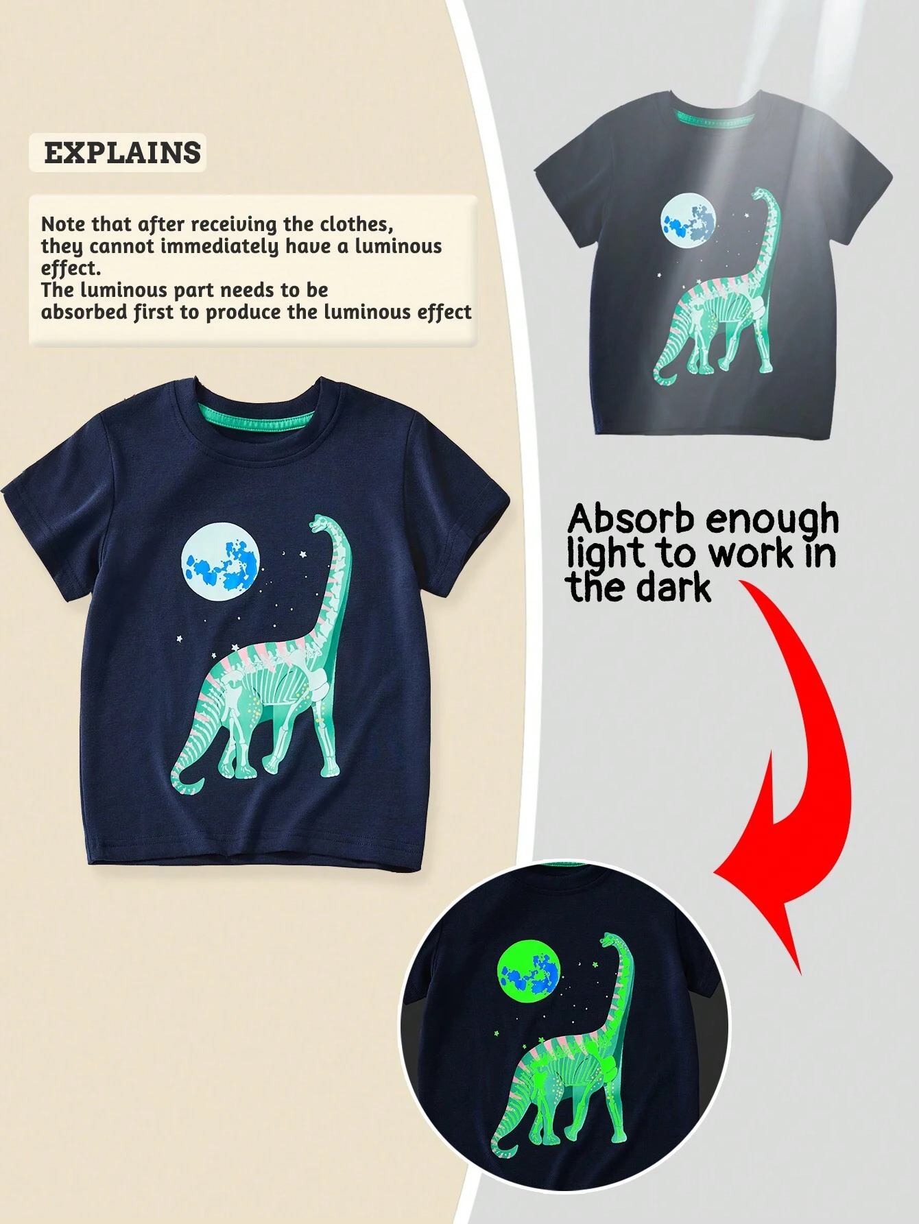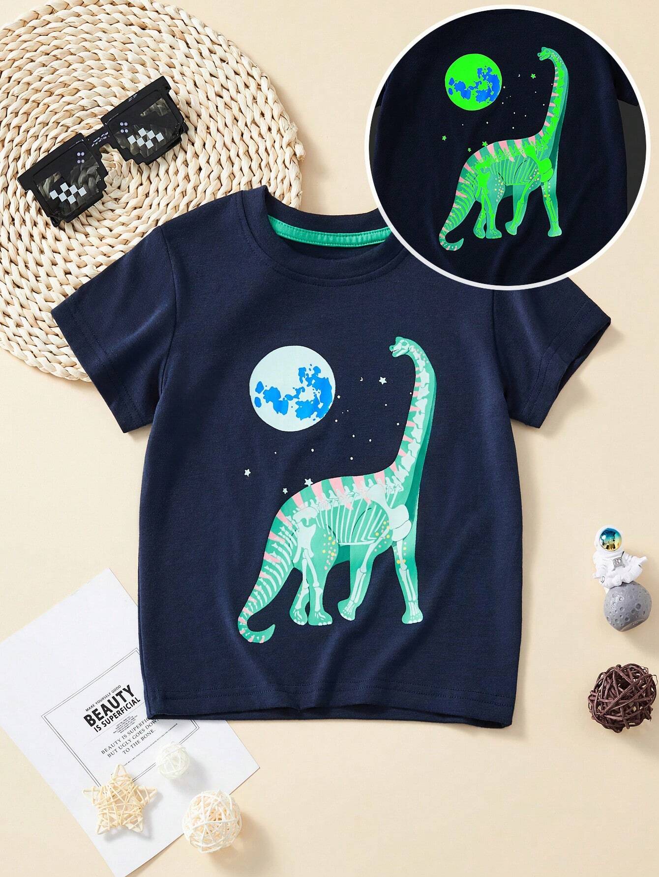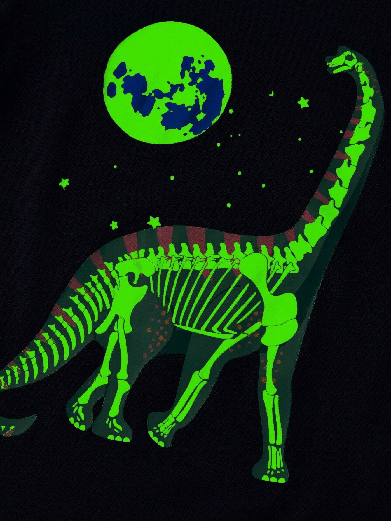 Camiseta con diseño impreso de dinosaurio animados luminoso. Talla 5