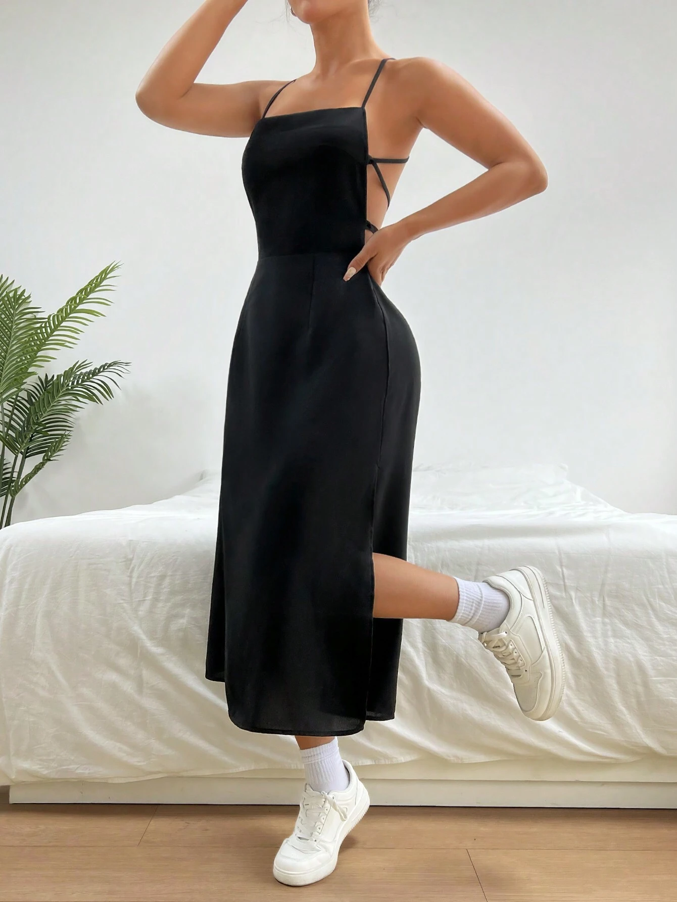 Detalles: Espalda al aire, Cruzado, Abertura alta